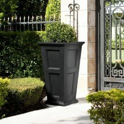 With its inset panels and classic design, the Fairfield Collection is a With its inset panels and classic design, the Fairfield Collection is a timeless choice that will never go out of style. These square planters can be used outdoors year-round, as they are resistant to high-impact, chemicals and extreme weather conditions. Double-wall design makes these planters sturdy, and provides the roots and potting mix with adequate insulation from surrounding weather conditions – it can be filled with sand or gravel to provide your planter with added stability.
