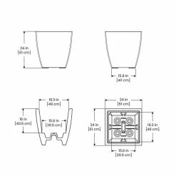 - Weight: 22 lbs. outside dimensions: 24 in. L x 24 in. W x 24 in. H, inside dimensions: 19.3 in. L x 19.3 in. W x 16 in. D, footprint: 15.8 in. x 15.8 in. capacity: approximately 20 Gal. (75 l) soil capacity and 7.9 Gal. (30 l) water capacity