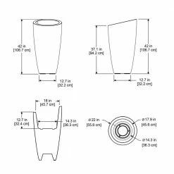- Weight: 22.7lbs; Outside Dimensions: 22in L x 22in W x 42in H; Inside Dimensions: 17.9in D x 12.7in H; Footprint: 12.7in D; Soil Capacity: 12 gallons (45 liters)