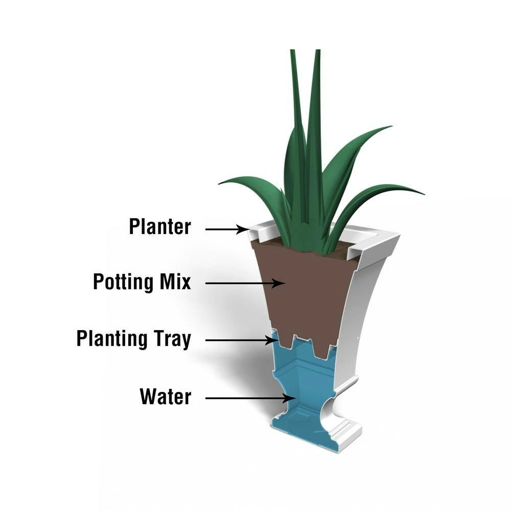 With its straight lines, the Vienna Planter is a lightweight, whimsical alternative to traditional urn planters. It can be easily incorporated into nearly any decor style given its ageless design . These double-wall planters are made from 100% high-grade Polyethylene, are weatherproof and have an ultra-tough construction, that allows you to enjoy them all year round. This Vienna Tall Urn Planter comes with a built-in water reservoir that provides your plants with a consistent source of moisture.