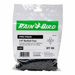 - 100-pack of 1/4 in. barbed tee connectors in plastic bag