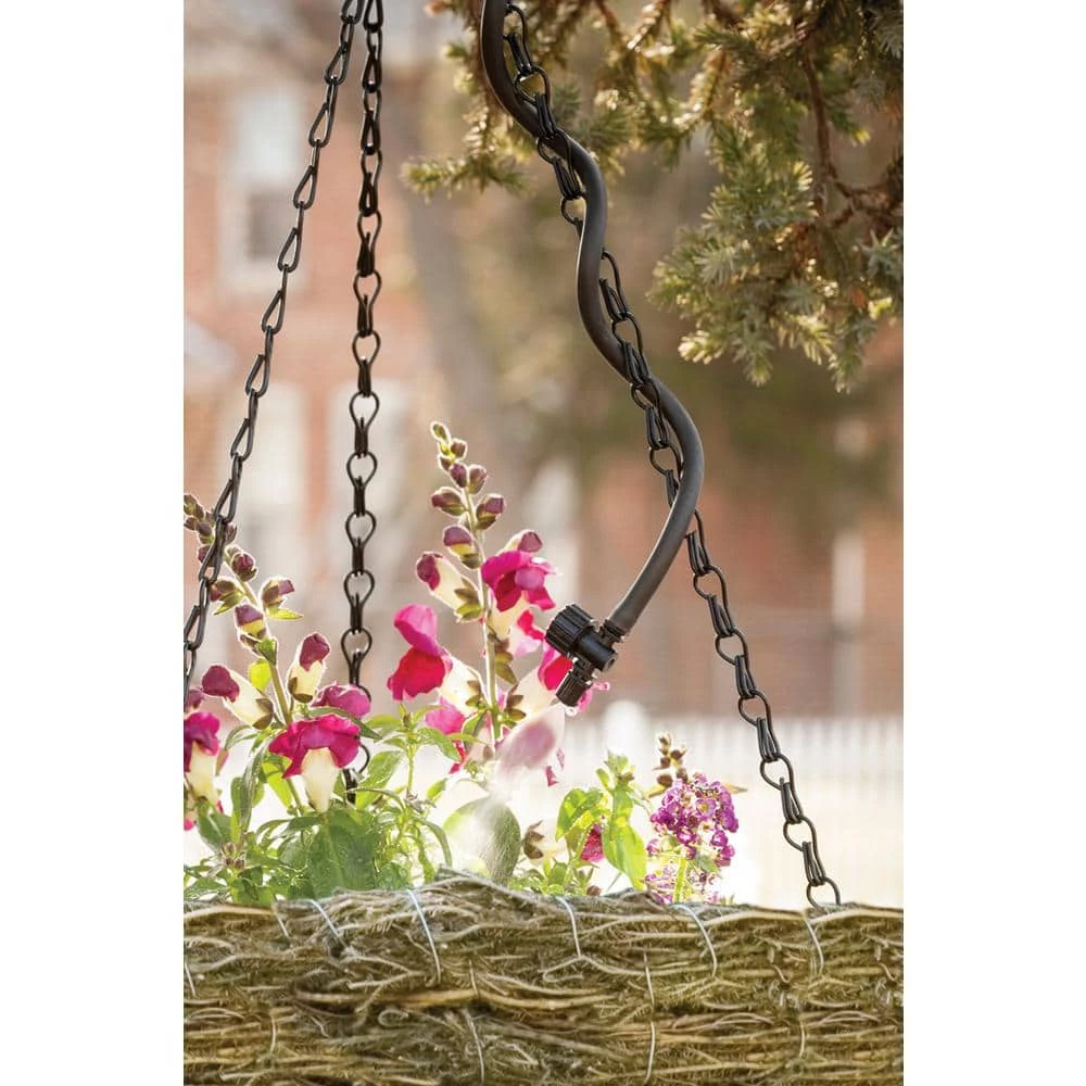 Rain Bird MISTUB-1S Drip Irrigation Flexible Mister, 360° Full Circle Pattern, 12 in. L, up to 1.3 ft. Spray Distance. Ideal for potted or hanging plants this unique mister delivers a gentle mist of water perfect for fragile plants, ferns and more. With its full 360° spray pattern and adjustable flow rate it can be used with small to large containers. The semi-rigid flexible tubing allows you to configure the mister into the exact position needed and secure in place by twisting or bending. Barbed end inserts easily into 1/4 in. Drip irrigation tubing. Twist cap to adjust spray distance from 0 ft. – 1.3 ft. and flow rate from 0 to 6 GPH. Constructed of highly durable UV and chemical-resistant materials to assure long life. Rain Bird. The Intelligent Use of Water.