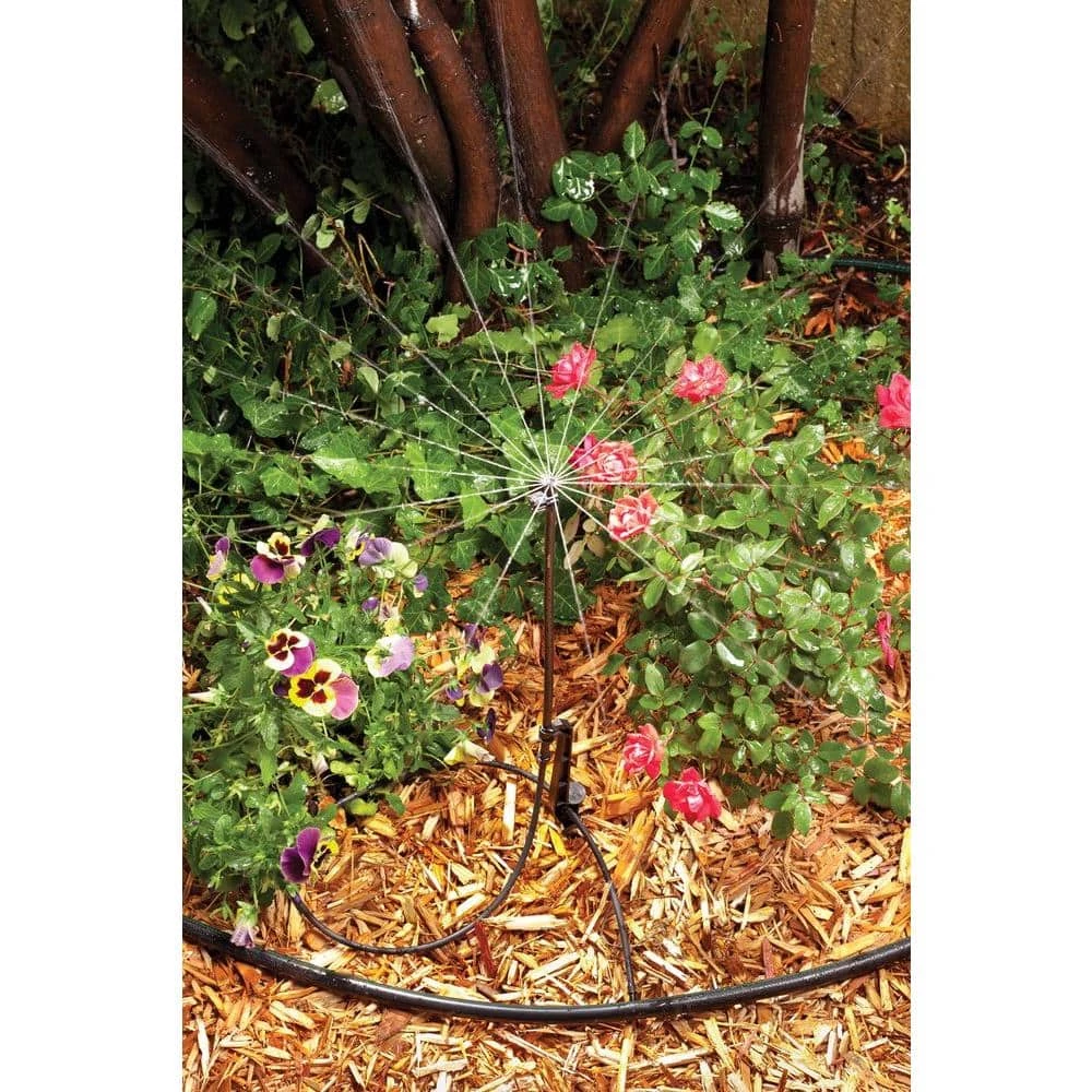 Apply drip watering efficiency in more places around your landscaping with this versatile staked riser with adjustable micro spray. The riser adjusts up to 18 in. height, and the spray adjusts from 0 ft. – 10 ft. in distance, allowing you to direct water exactly where you need it in a wide variety of planting areas. It’s ideal for taller plants such as shrubs and bushes, as well as flower beds and ground cover where you may want broader coverage. Includes a sturdy 8 in. stake plus 36 in. L of 1/4 in. tubing with barbed fitting for quick attachment to 1/2 in. drip irrigation tubing.