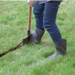 - Project involves digging to bury sprinklers and trenching the lawn to bury tubing using a spade shovel or half-moon edger
