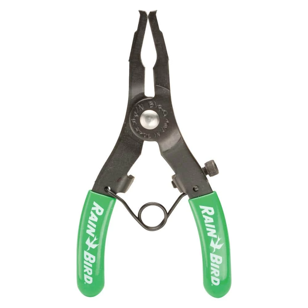 Rain Bird PTC1 Spray Head Pull-Up Tool for Pop-Up Sprinklers. Finally a tool that simplifies and speeds-up maintenance of pop-up lawn sprinklers. Easy to use tool pulls pop-up sprinkler stem upwards and prevents it from retracting while you work on maintenance or replacement of spray nozzles. Ever noticed how difficult it is to change or install nozzles and how easily a wet stem can quickly disappear back into the spray body. Once the stem accidentally slips and retracts back into the sprinkler body, you have no option but to completely disassemble the spray head to reattach the nozzle. That frustrating and time-consuming exercise is completely eliminated with this handy tool. Easy to use instructions: (1) insert flanged flat metal tips into nozzle assembly, squeeze handles and lift to pull stem up and out of sprinkler body (2) now hold stem by hand and squeeze handles to open jaws (3) position jaws around stem (4) release handles and tool firmly holds stem in a fully extended position. You’re now free to work with both hands without worry of stem retracting back into spray body. Tool is adjustable for width of opening by simply tightening or loosening screw on handle by hand. Works with all brands of pop-up irrigation sprinklers. Corrosion-resistant metal with comfortable vinyl handle covering. Rain Bird The Intelligent Use of Water.