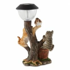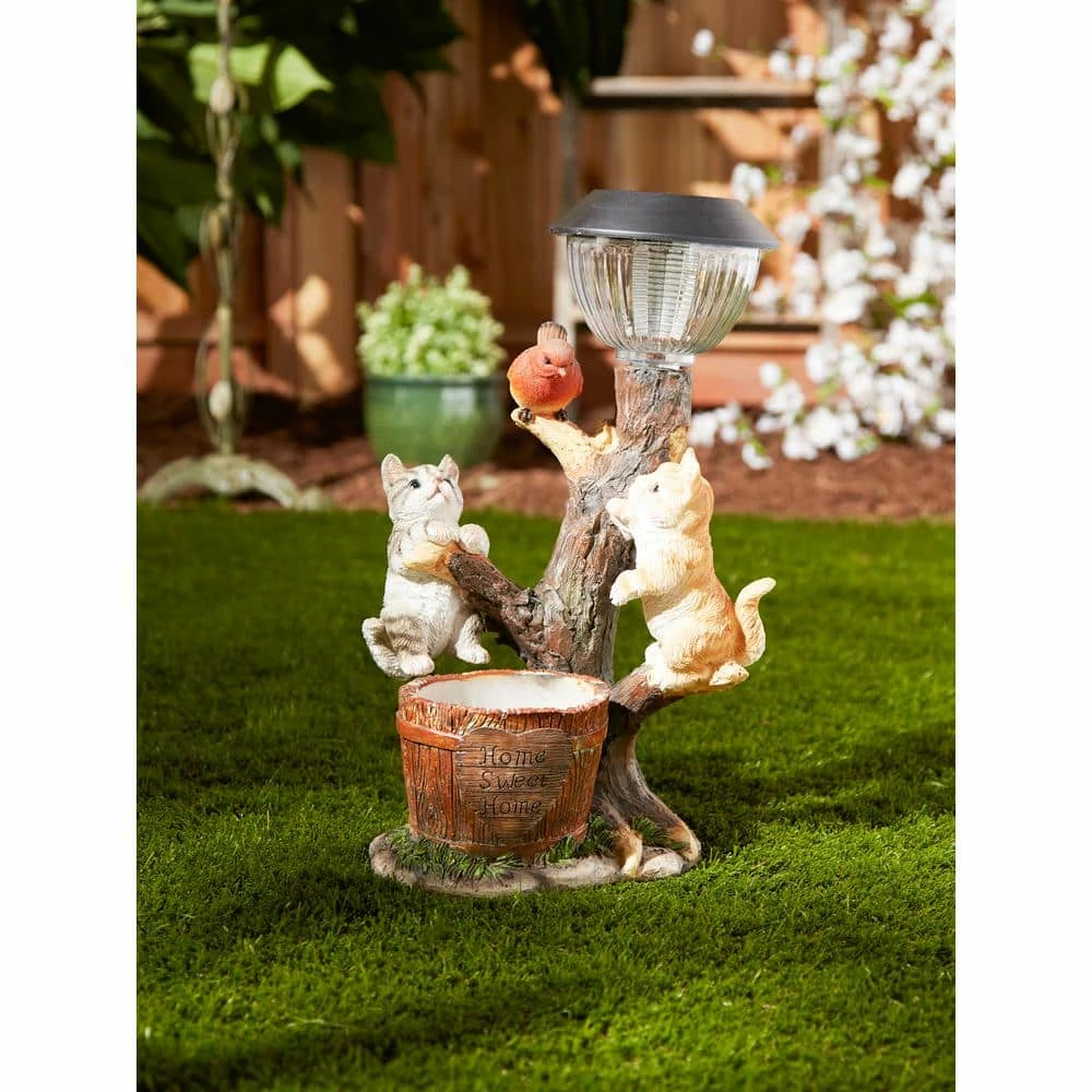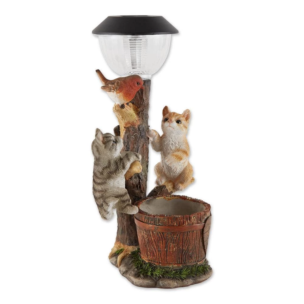 - Whimsical statue features 2 kittens playing on a branch trying to get a to a bird, makes a playful lighting and decor addition to either your indoor or outdoor space
