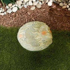 - Enchanting garden decoration featuring intricate details that lend to the astral glory of this starry stone-look moon and sun plaque