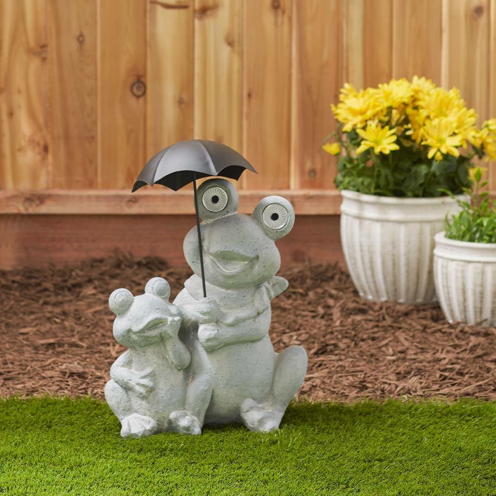 - Make your garden look like a whimsical place filled with magic and wonder with this adorable statue of charming frogs trying to stay dry under a very tiny umbrella, made of polyresin, this statue looks like it is carved from stone and will be water and rust resistant