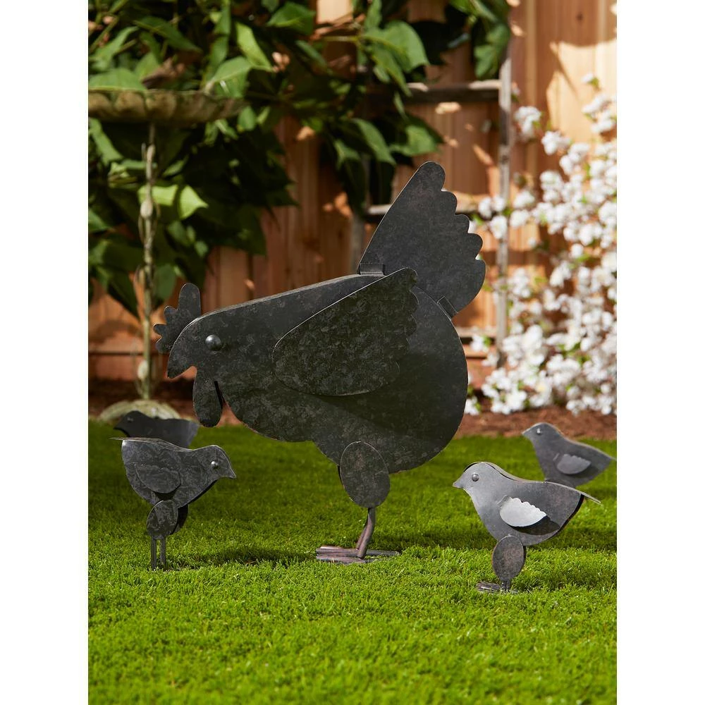 - Mother hen and her young charges scratch up some lunch in this charming country garden sculpture