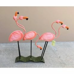 - Sunny tropics and sandy beaches spring to mind at the very sight of this fabulous flock of bright pink flamingos, metal-art statue is a colorful confection that no discerning decorator will want to do without