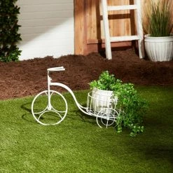 - Display potted plants with a healthy dose of country whimsy, this white metal tricycle plant holder looks great indoors or outside
