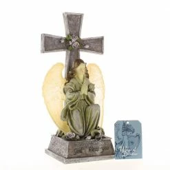 - Bless your garden with the light of God’s love, faux stone angel and cross statue is beautiful to behold by day, at night, a hidden solar light bestows a comforting glow upon your special space