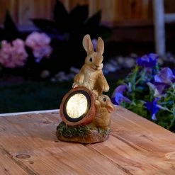 - Turn your garden into a woodland reserve with this cute bunny family figurine, this adorable statue features a realistic depiction of a mother and baby rabbit having quite the conversation, makes a playful lighting and decor addition to either your indoor or outdoor space