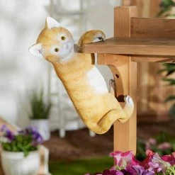 - Mischievous tabby cat named Amber can’t resist climbing up to see what’s on the other side, she’s captured in lifelike detail and will hang from your favorite potted plant, garden gate, or wherever there’s a hint of trouble to discover