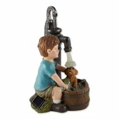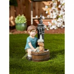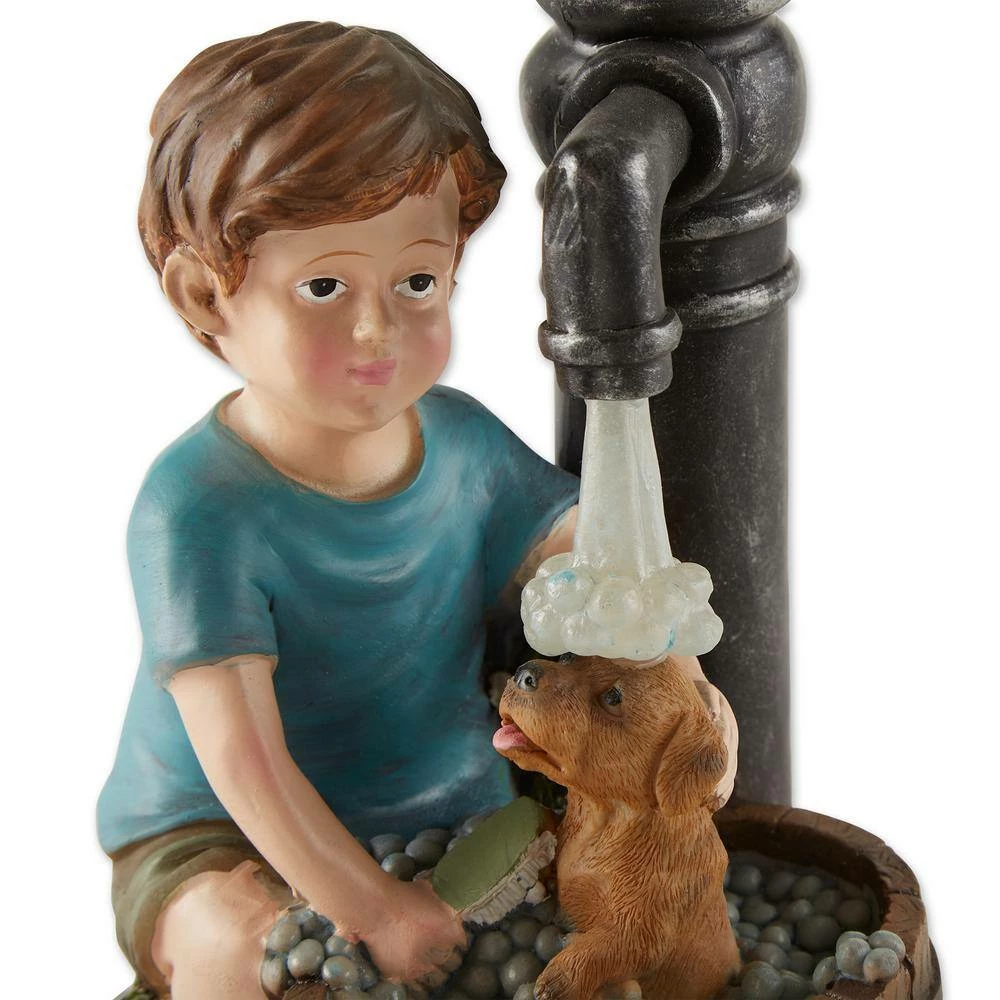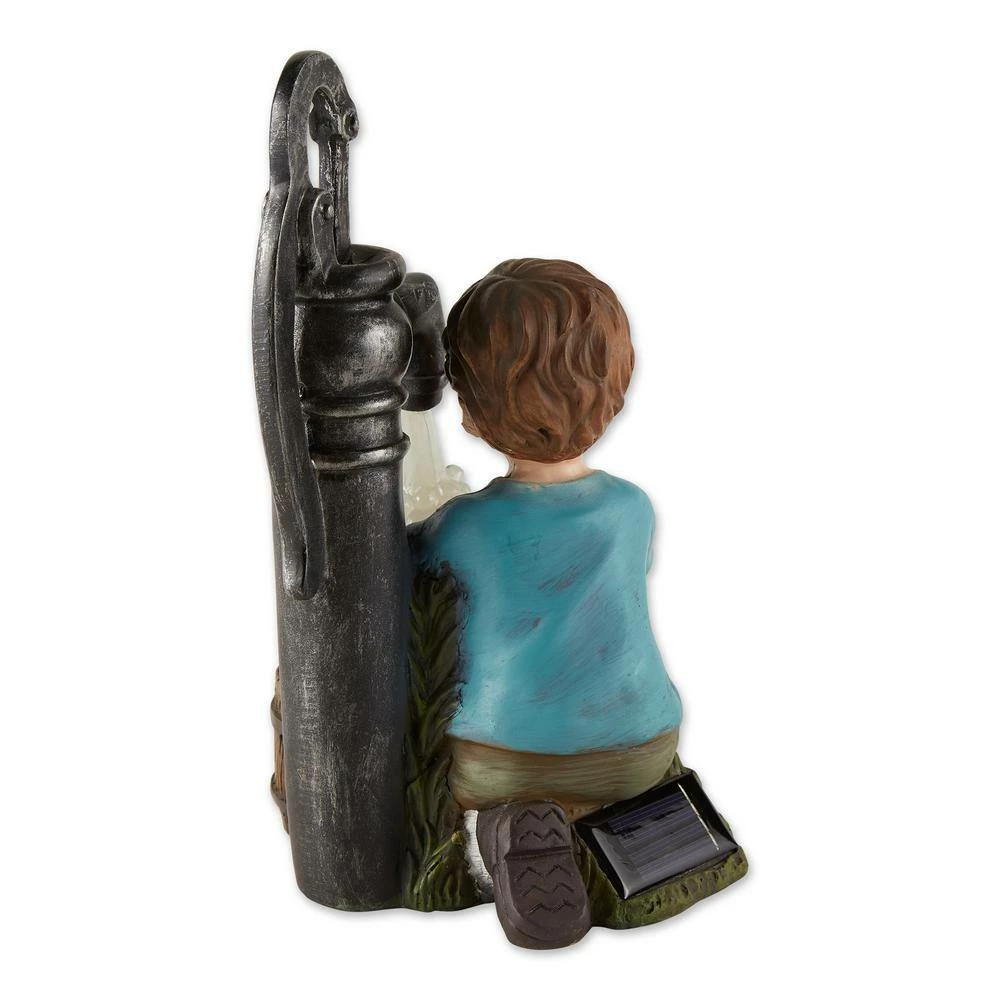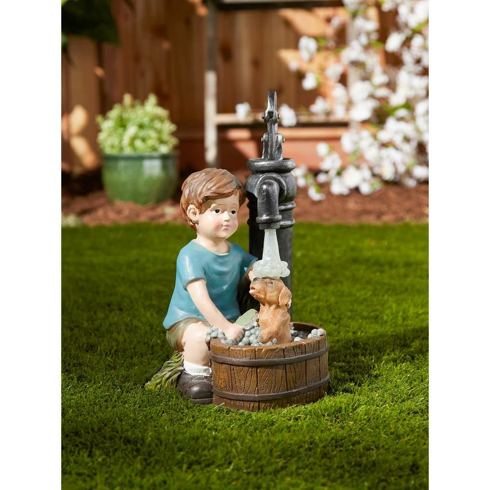 - Make your garden look like a whimsical place filled with magic and wonder with this adorable statue of a boy giving his dog a bath, this solar powered light will provide a soft glow at night do light up this adorable statue