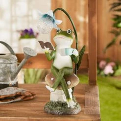 - Make your garden look like a whimsical place filled with magic and wonder with this adorable statue of a charming frog relaxing on a mushroom, this adorable solar statue is a great addition to your front walk, garden, or patio