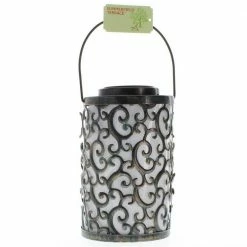 - Gorgeous iron swirls and flourishes make this solar-powered lantern a beautiful accent for any outdoor space, the built-in solar panel at top will soak in the sun’s rays all day long, and by night the interior will glow with magical light