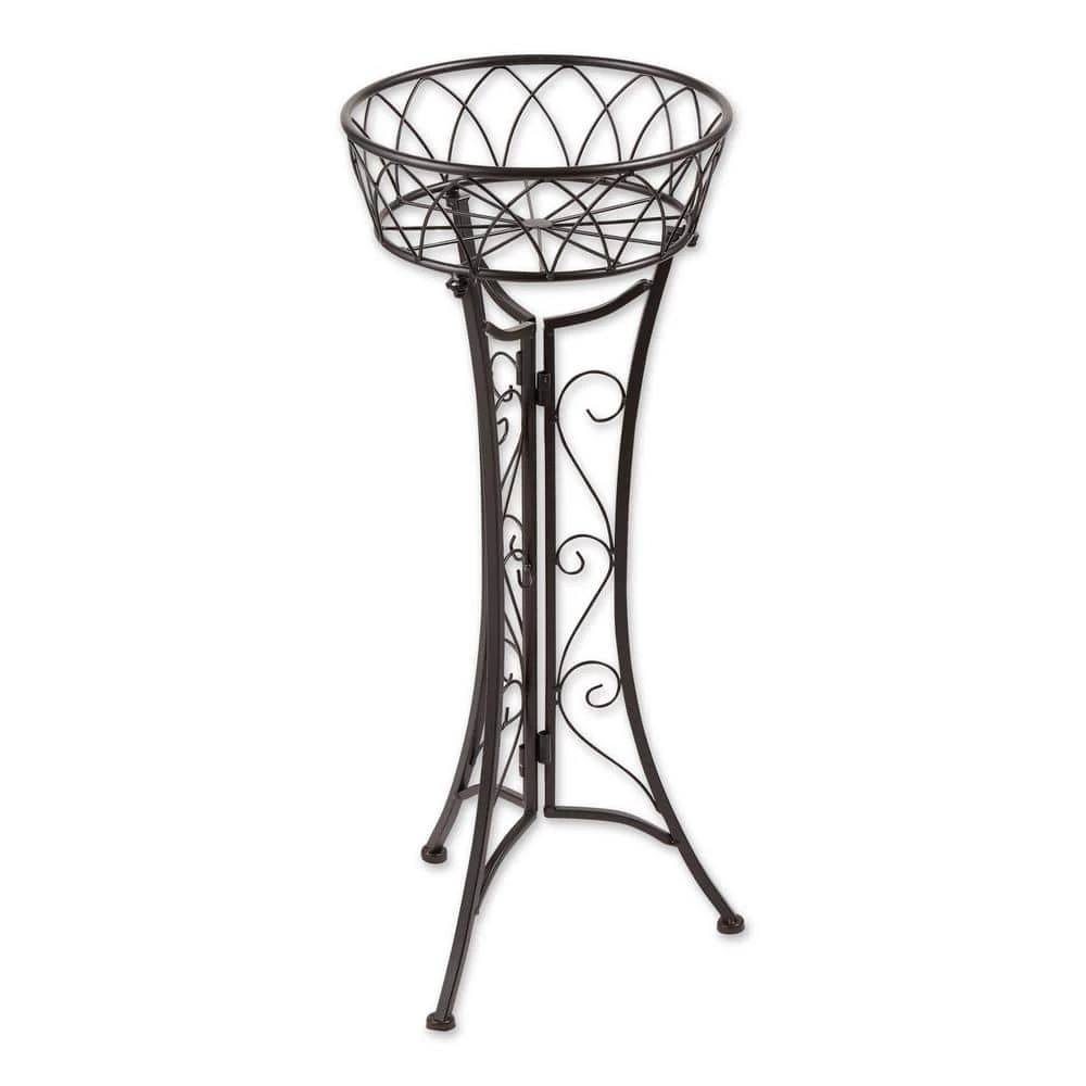 - Lacy scrolls in a verdigris-style finish comprise this two-tier plant stand, a graceful addition for indoors or out with shelves securely holding 2 of your favorite plants