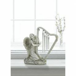 - When a slight breeze passes through your garden, you’ll love the sound of this wind chime, admire the antique stone finish of this musical angel statue, as she is the perfect groundskeeper for your stately gardens