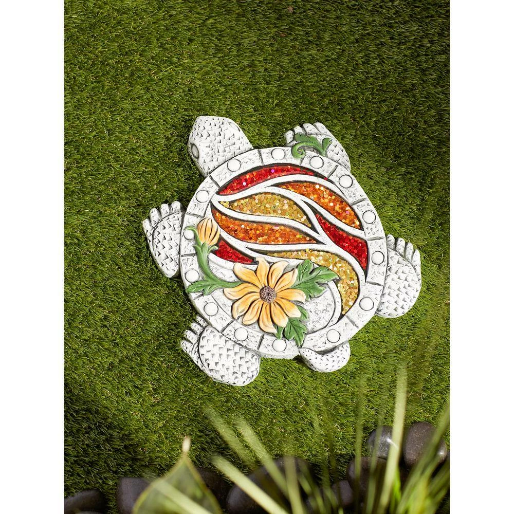 - Turn your garden into a place of gathering with this warm and inviting welcome stepping stone, the turtle shell features an attractive glitter overlay that emits a subtle sparkle in the sunlight